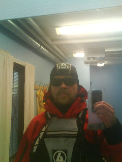 I min vänsterhand håller jag den vattentäta påsen med mobiltelefonen/kameran i. Mycket praktisk. Modell AQUAPAC, Claes Ohlsson.