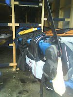 Efter ett antal rollar, re-entry och flotörräddningar så är kajaken full med vatten. Då kommer pumpen väl till användning.