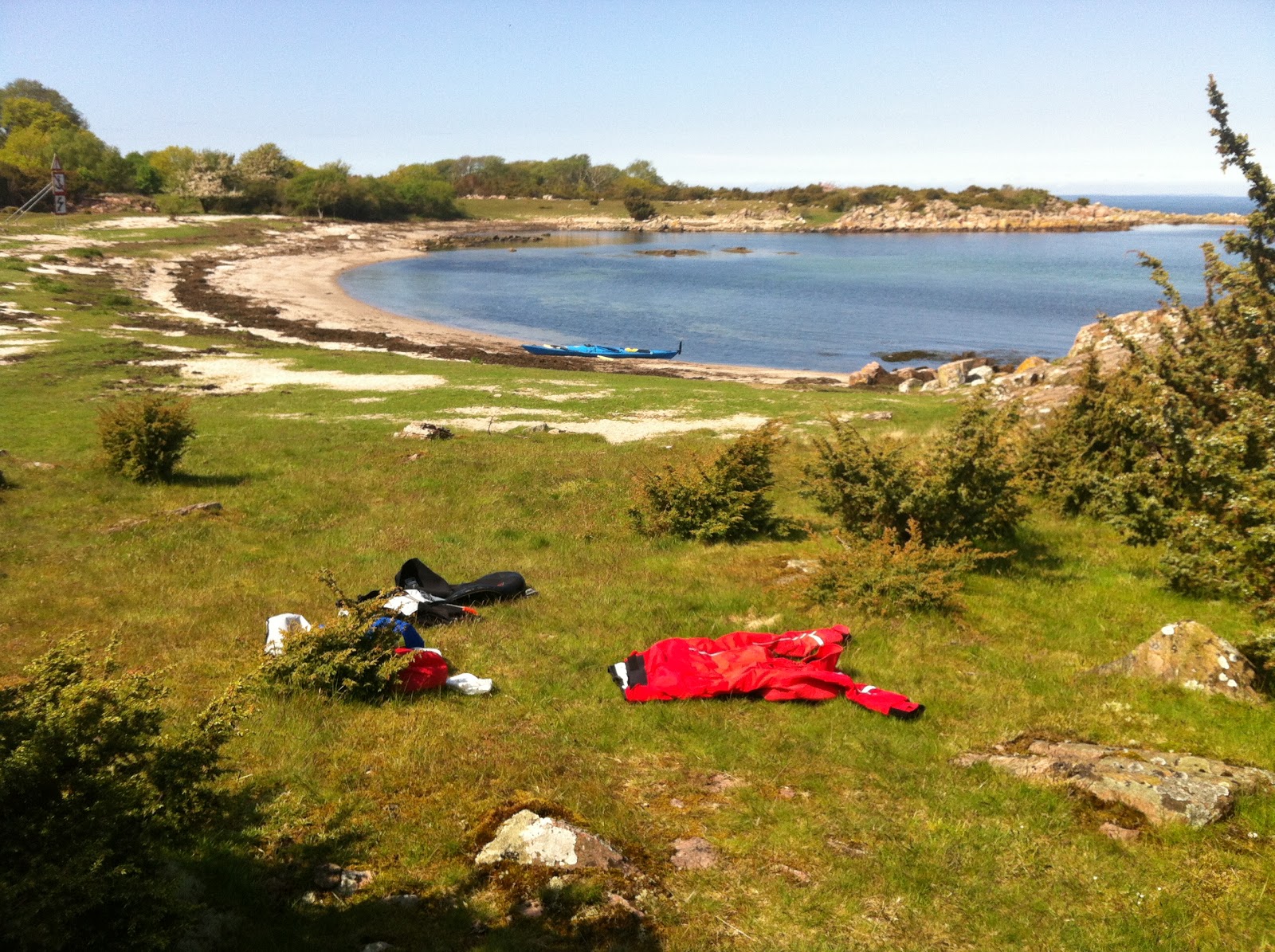 På andra sidan ön hittar jag en underbar vik där jag tar en vila med mat, bok och ett skönt slummer.