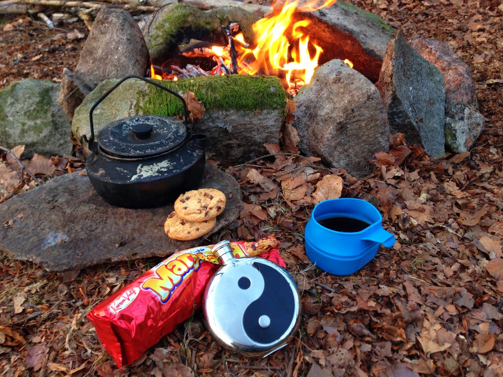 | Ta fram kaffepanna, kaffe och tänd en eld. |