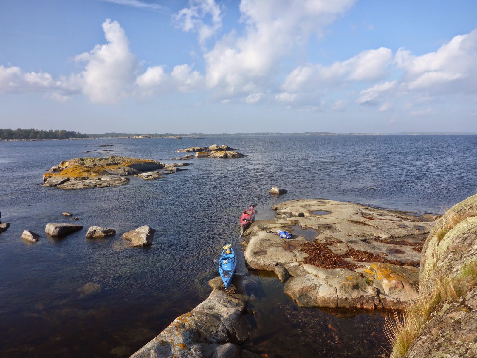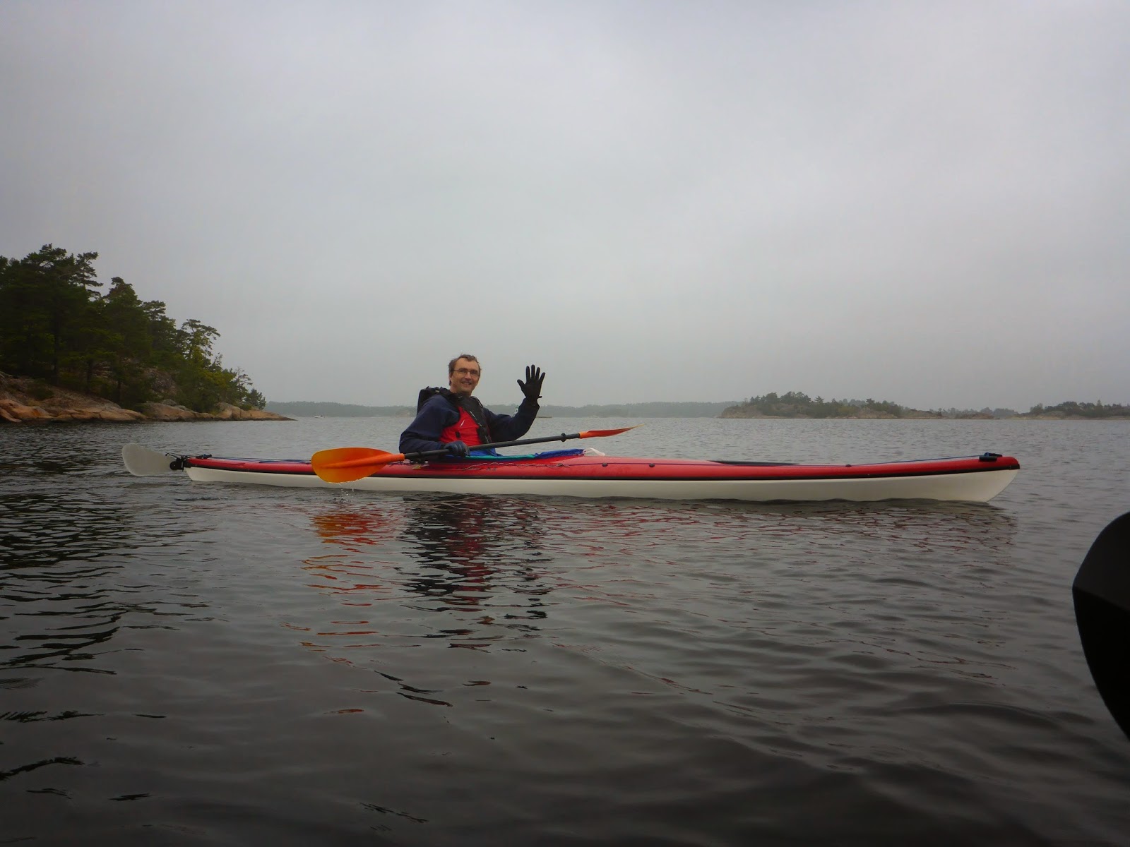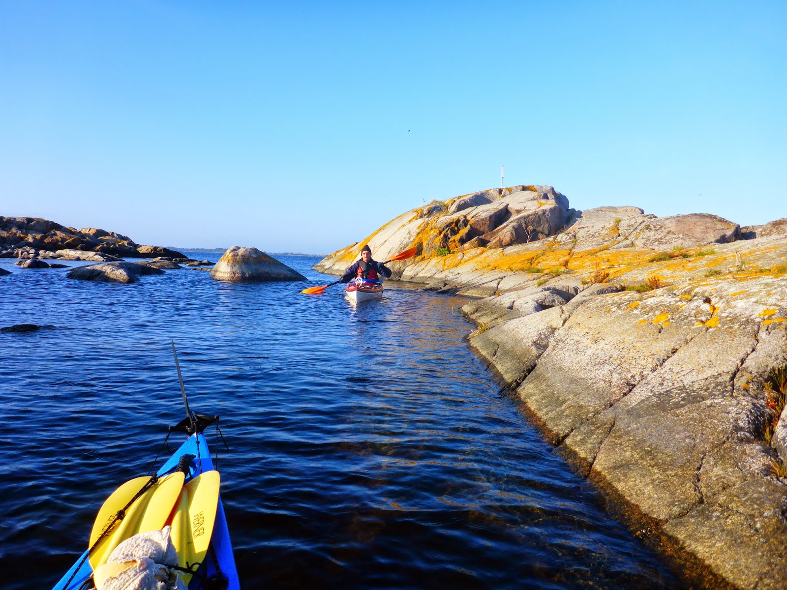 …två kajaker glider i väg mot…
