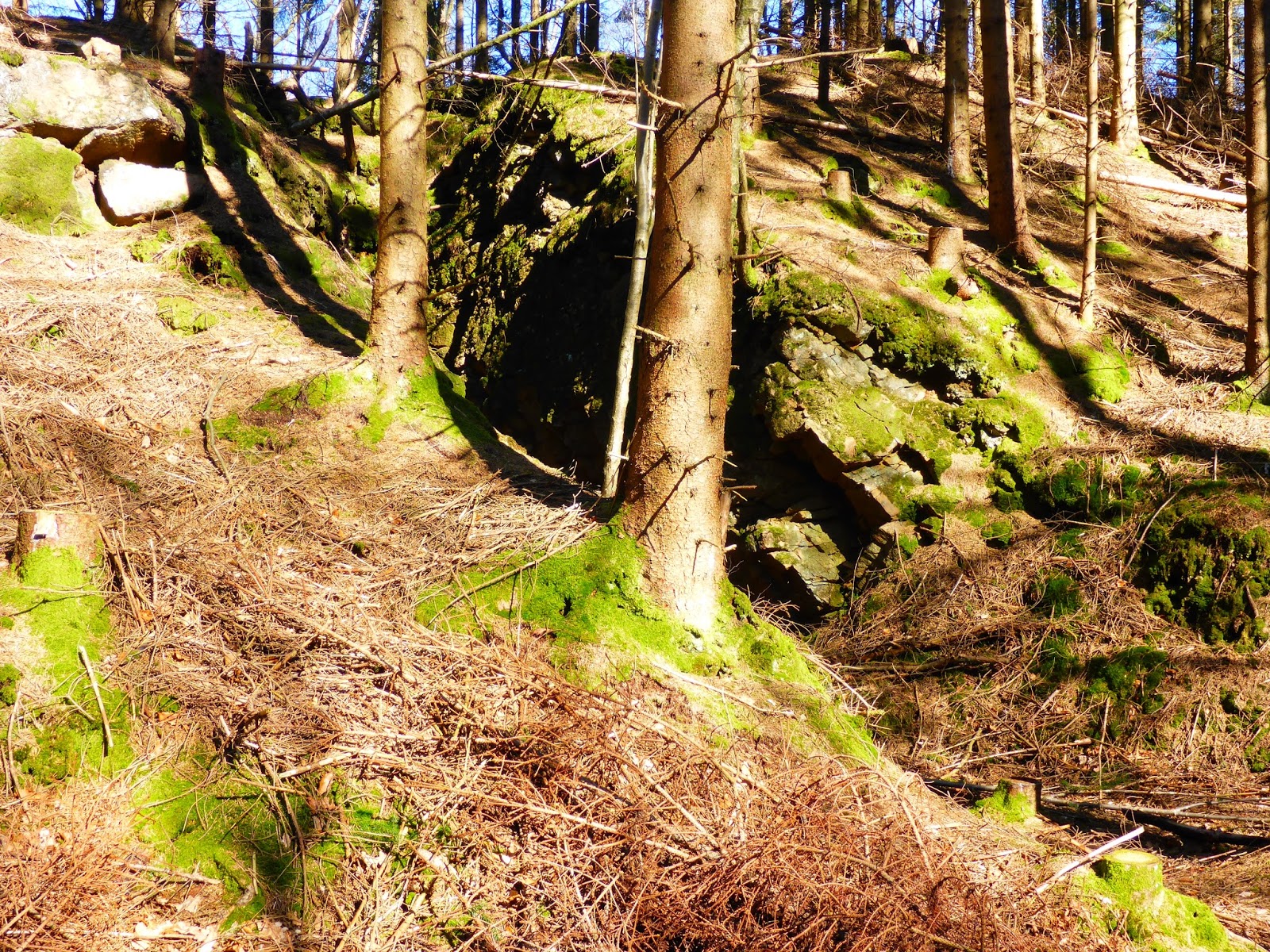 På en liten ås kan man finna på ena sidan ett dagbrott för vit fältspat och på andra sidan för den röda.