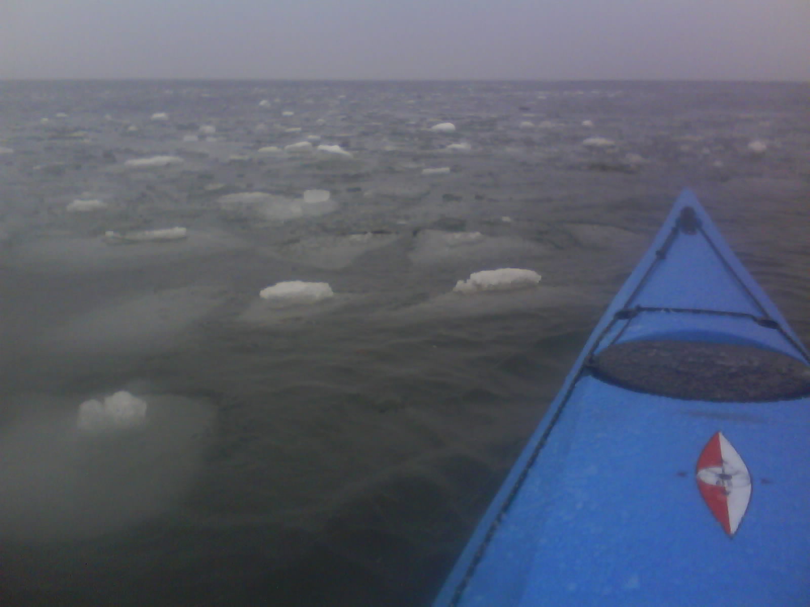 Stora bälten av femkronorsstora, mjuka isklumpar som liknade skumgummibitar, kom drivande i vågorna.