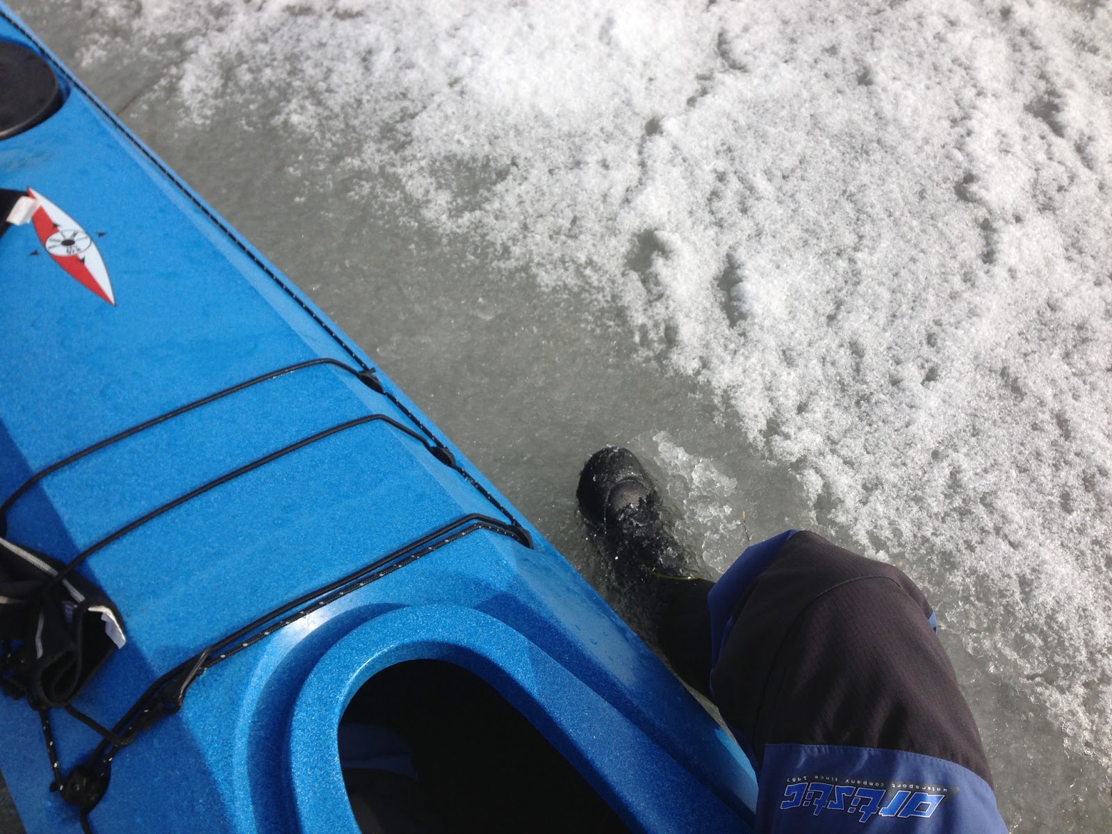 ”Hackpaddlar” mig genom den centimetertjocka isen till öppet vatten.