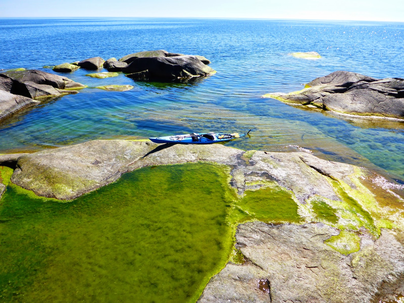 I början av maj paddlade jag ut från Klintemåla med kajaken full med mat, vatten mm. Målet…en vecka bland kobbar och skär. Att stå på bryggan och känna ivern när jag packar kajaken och sen uppleva lugnet när de första paddeltagen tas och vattnet skvalpar runt fören…är oslagbart. Allt jag behöver i en kajak och nu är det bara jag och havet…jag är ”hemma”.