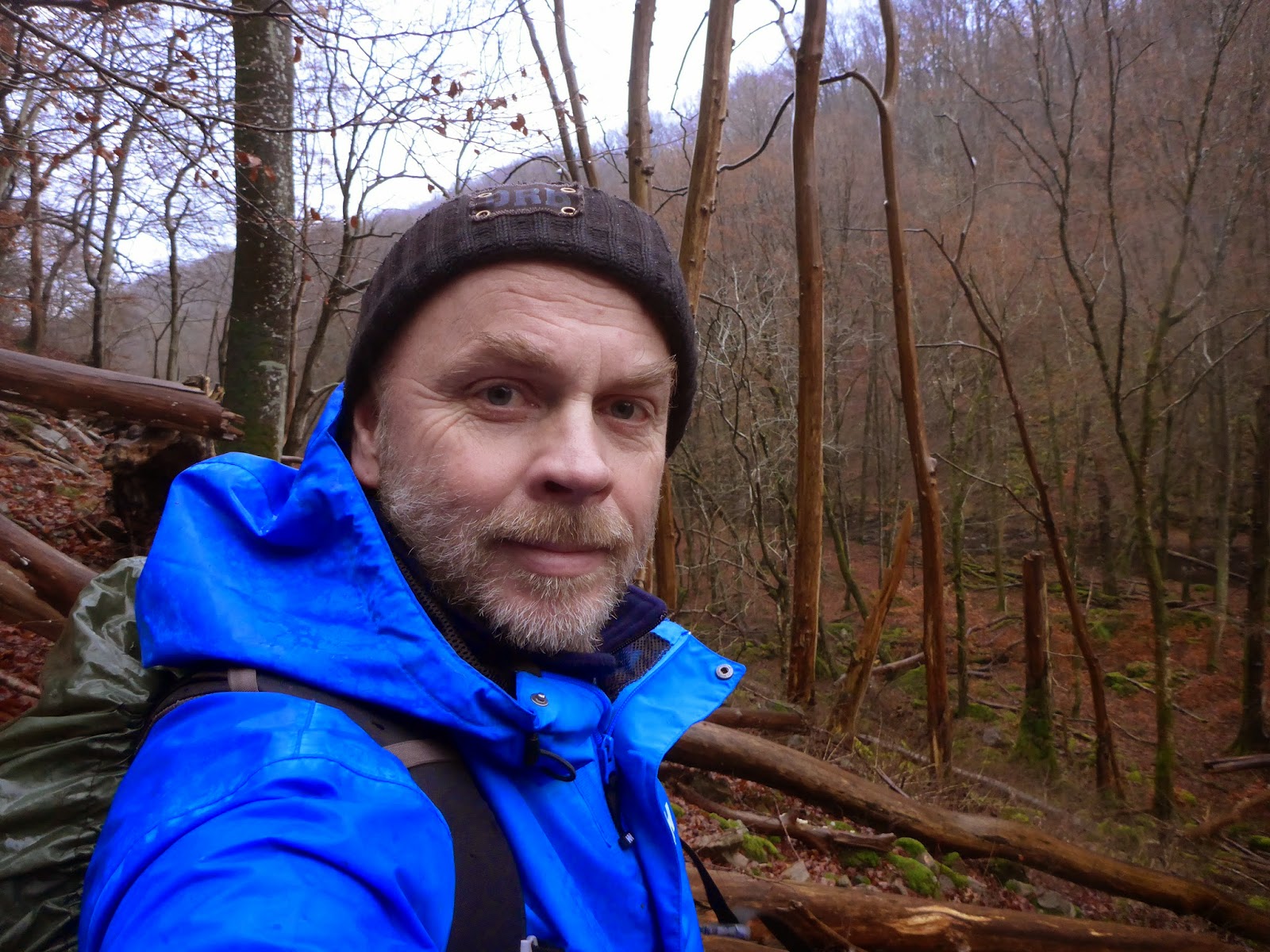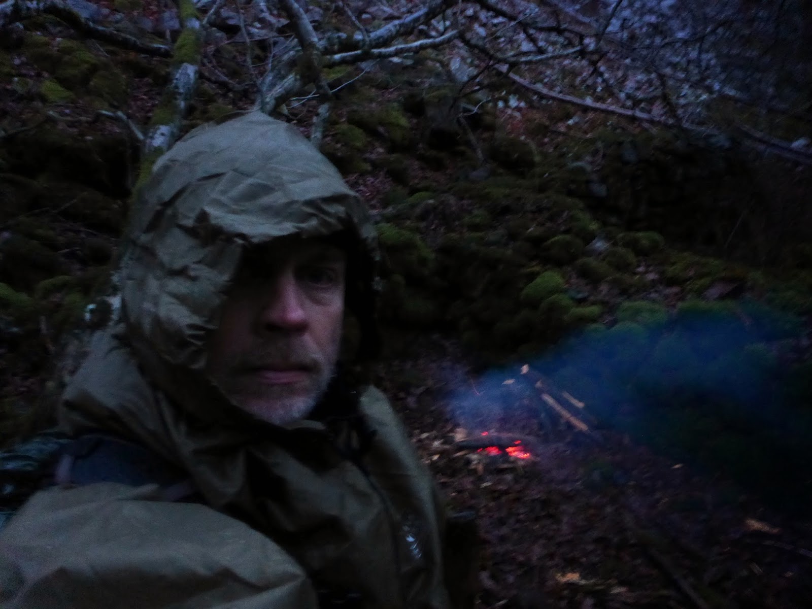 Regnet strilar ner och löven ligger som en tjock blöt matta på marken. Har man ögonen med sig kan man följa hjortarnas rörelse i landskapet. Tar mig ner längs branten bland slippriga stammar och mossiga stenar. Väl nere inrättar jag ett litet läger för att skydda mig från regnet som ökar i styrka. Elden tänds, kaffe kokas och när mörkret faller följer jag den porlande bäcken tillbaka…