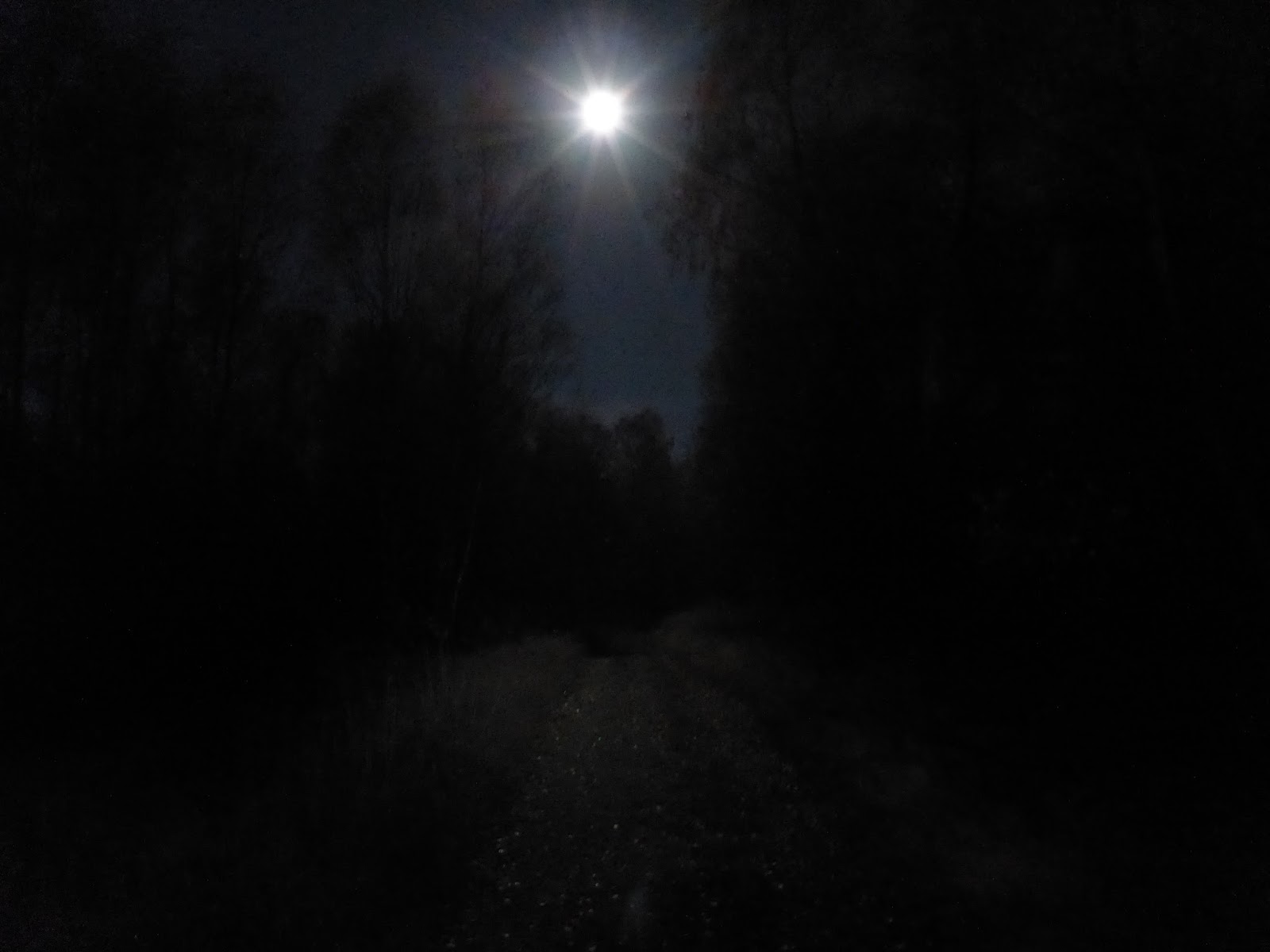 Parkerar bilen 23.00, stänger av motorn, kliver ur bilen och omfamnas tystnad och mörker. Hänger på mig ryggsäcken och går in i skogen. Den steniga stigen slingrar sig mellan granar och bokar och är nu i början så gles att månen lyser upp min färd utan hjälp av pannlampan.