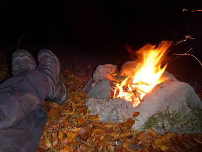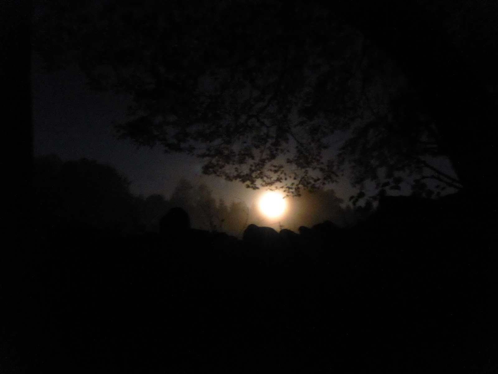 Vid 03.00, ungefär, så stod månen så lågt att pannlampan fick vara på hela tiden. Nu började också tröttheten sätta in och jag började fundera på vad jag gjorde i denna branta bokbacke bland snår av björnbär och björkar och svårigheten att hålla kompassriktningen var påtaglig, när jag kunde ligga hemma i min varma säng?!?